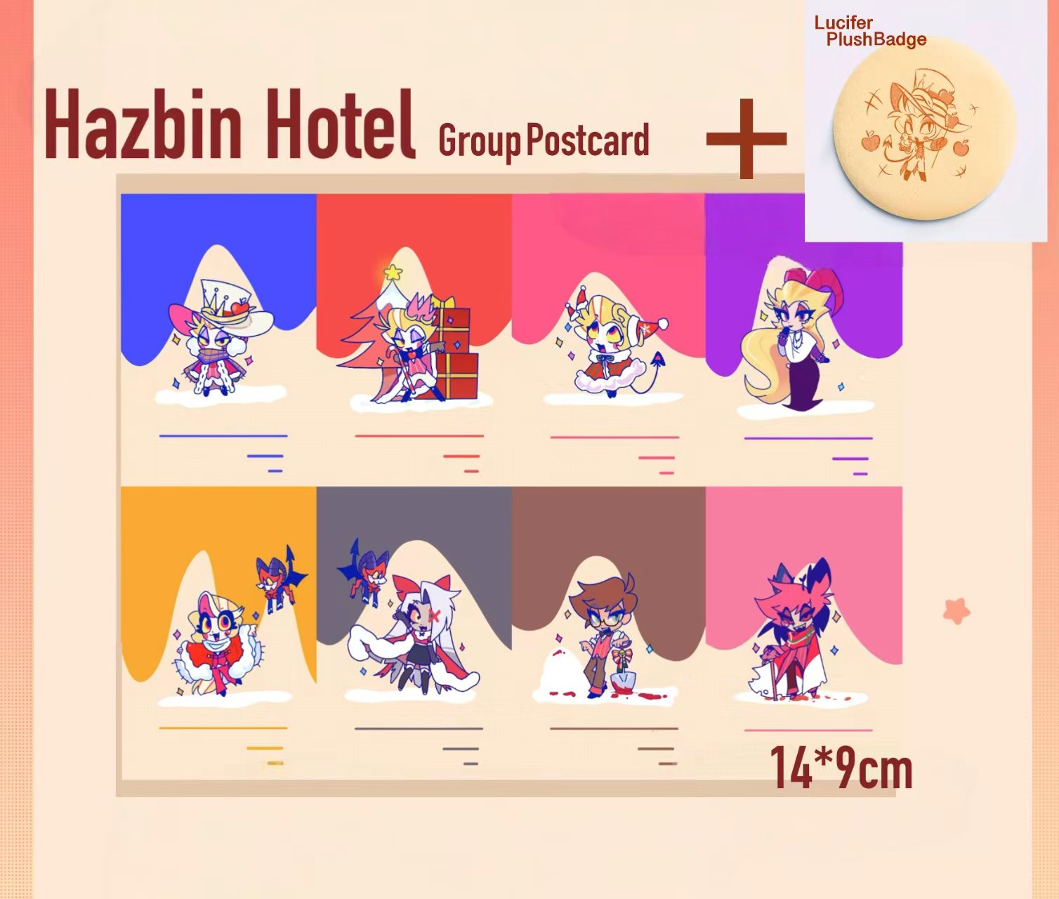 Group Postcard & Lucifer Plush Badge