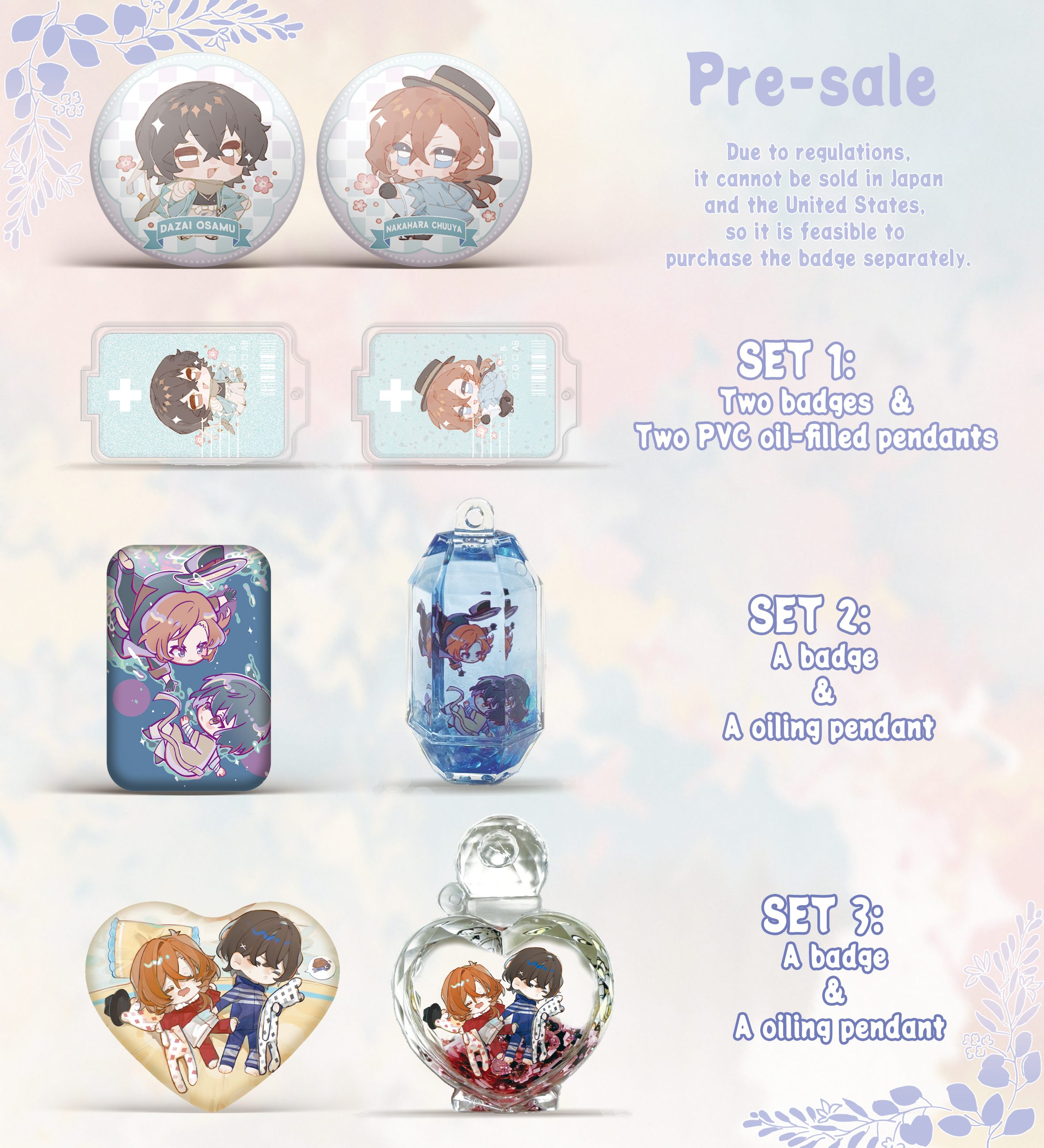 Characters: Dazai osamu&Nakahara Chuuya Material: High quality ferroalloy/Acrylic Size: Badge: about 5.8cm Acrylic stand: about 6cm Design Details:...정상가 $3.99부터세일가 $3.99부터 정상가단가 단위