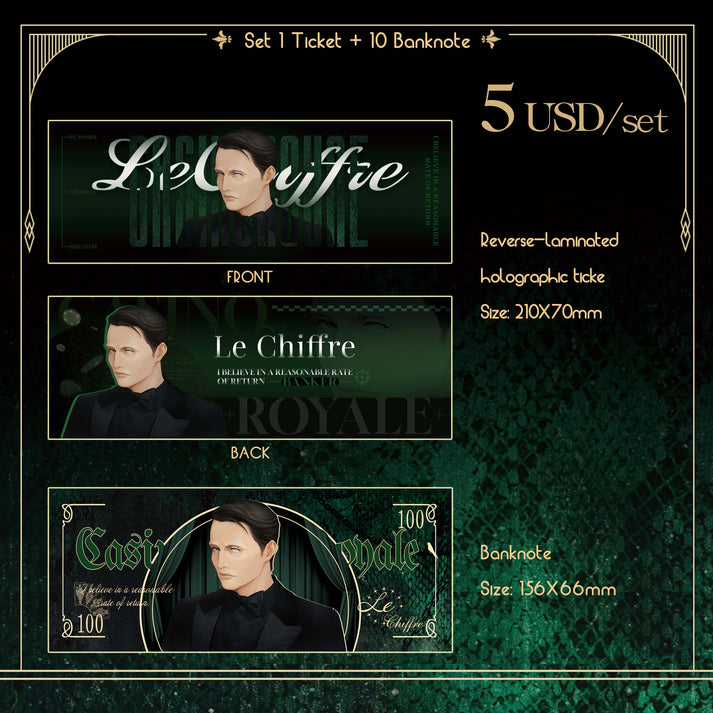 [In Stock] Le Chiffre Reverse-laminated holographic ticket + 10 Banknotes