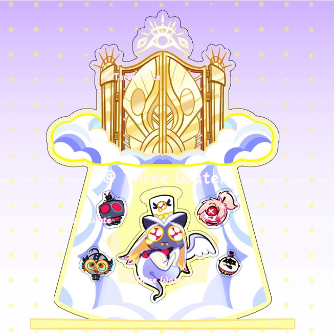 16cm Magnetic Standee with 4 Magnetic components. Sir Pentious is floating in the air. In the background there's four magnetic components, you can choose to attract it on the background or on Sir Pentious.