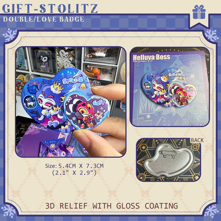 HB-stolitz-gift "Double-Love Badge/RAISED RELIEF CARVED WOOD FRIDGE MAGNET/Acrylic Standee"