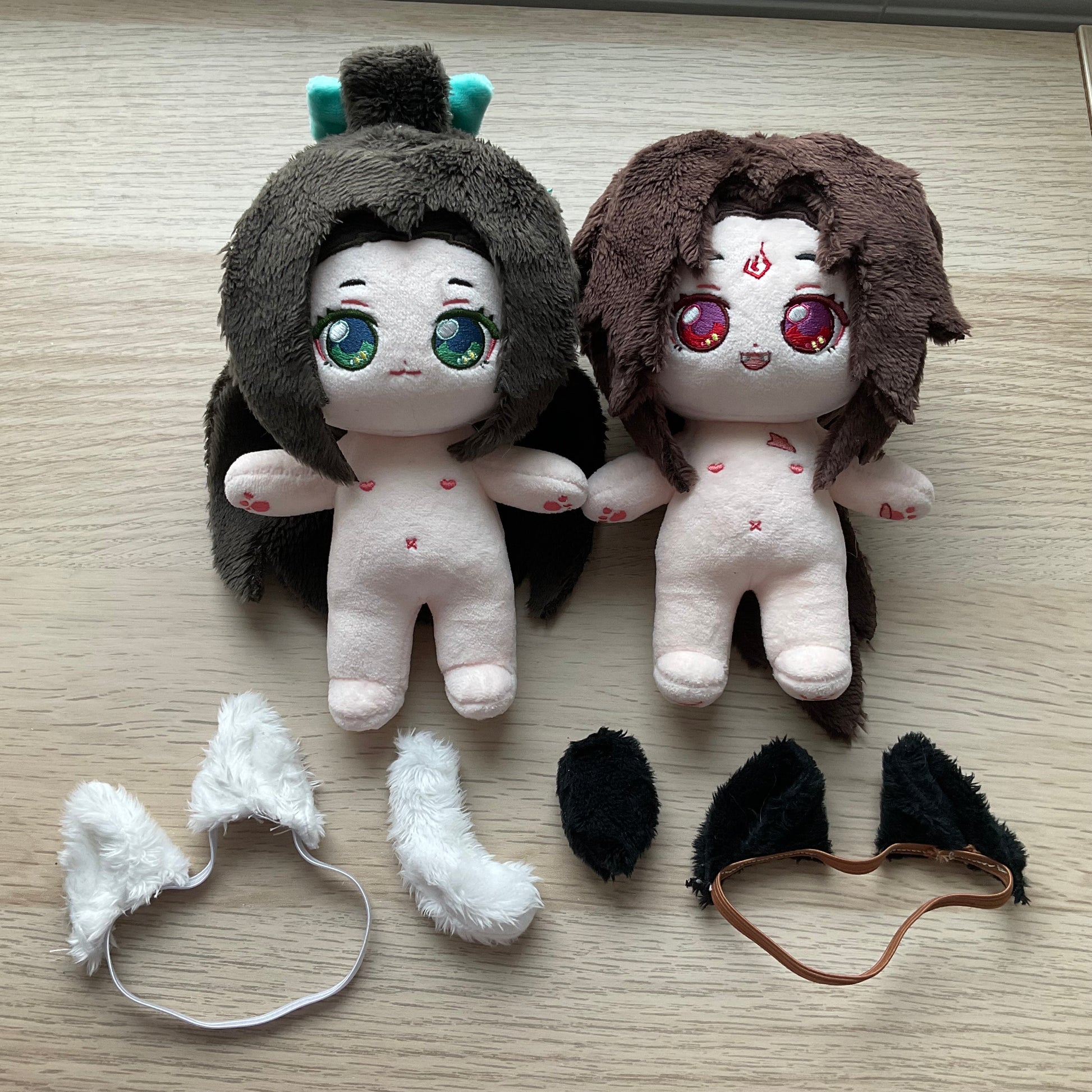Both dolls in this pair feature an internal poseable skeleton, and are equipped with detachable ear and tail components.