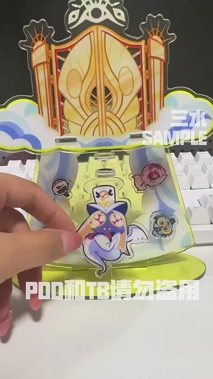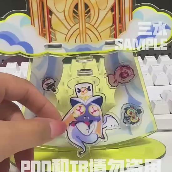 16cm Magnetic Standee with 4 Magnetic components. Sir Pentious is floating in the air. In the background there's four magnetic components, you can choose to attract it on the background or on Sir Pentious.